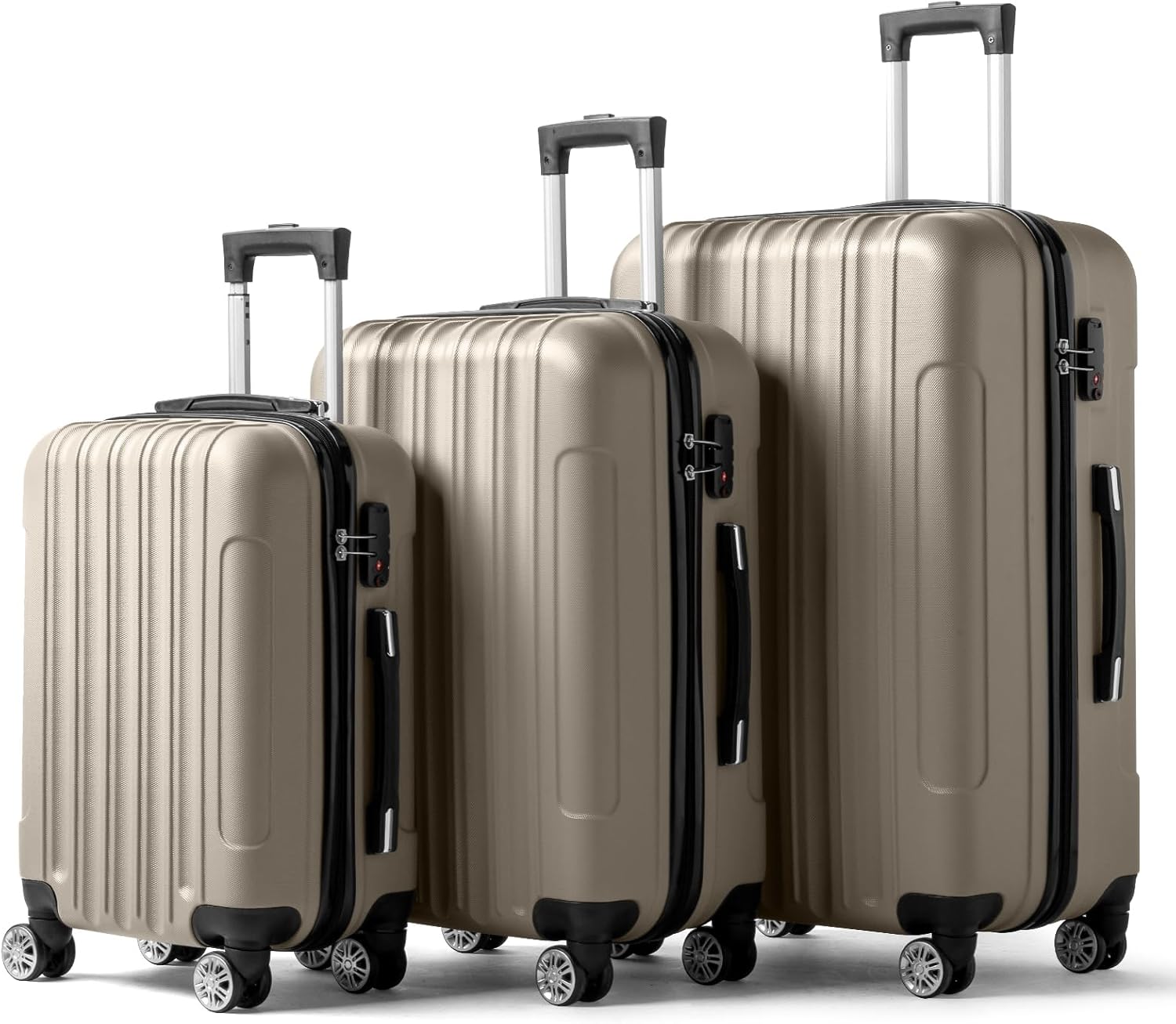 - 【Modern Appearance】The stylish and smooth vertical stripe design of the rolling luggage makes it more resistant to pressure and wear and brings a good mood to your journey. It includes four moulded side feet, they allow the luggage to remain upright even when standing on its side.