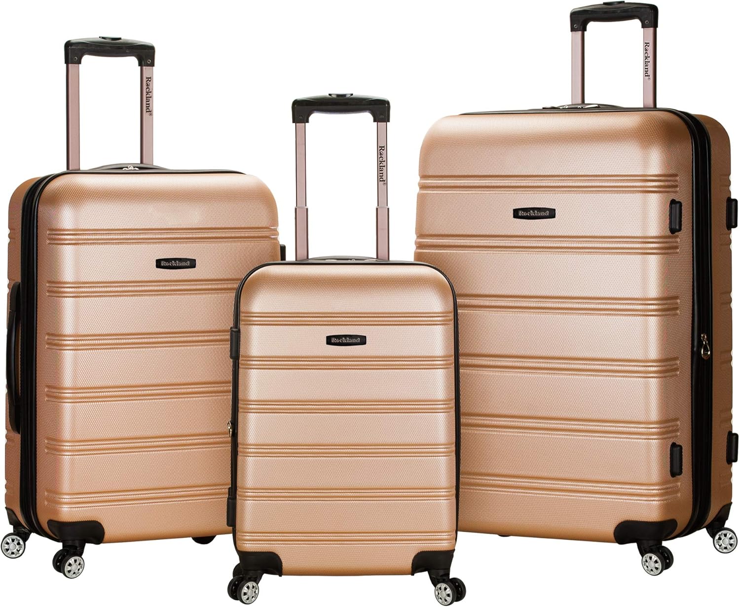 - Three-piece set of hard-side suitcases with multidirectional spinner wheels and interior mesh zip compartment